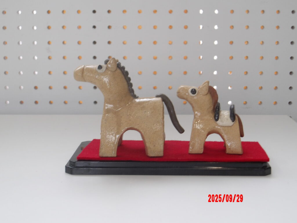 今回作ったのは、来年の干支、午年にちなみ「かわいいお馬の親子」。陶芸は難しいとのイメージがあり、「変顔の馬」「カバに似た馬」などの作品も出来上がるものと予想していましたが、見事に予想は裏切られました。先生の指導と参加者のセンスで18名の参加者全員が、見事でかわいいお馬を作り上げました。
