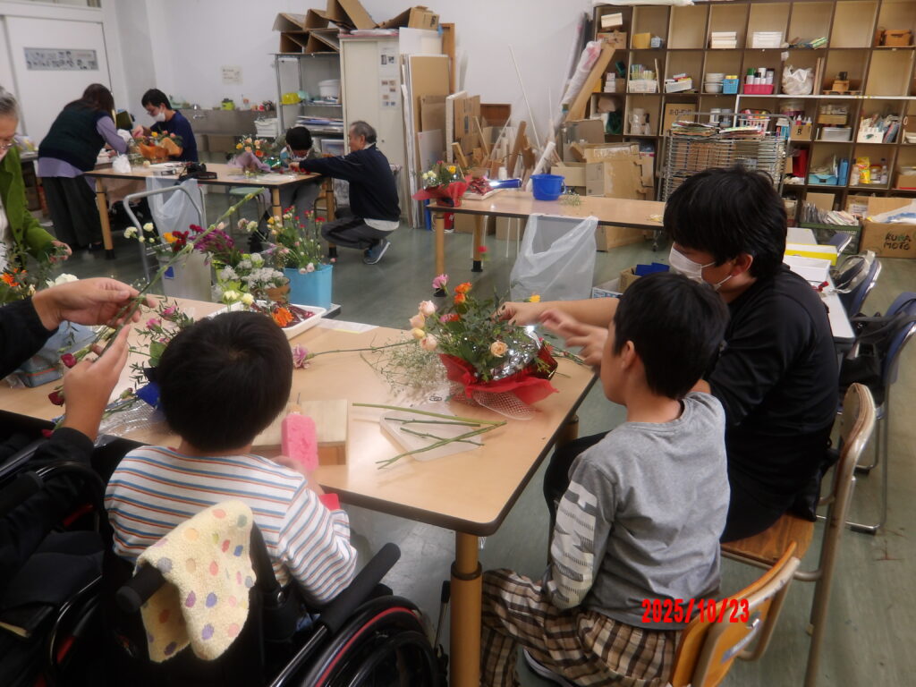 令和7年10月23日(木)特別支援学校川西分校に笠井先生を初めヨーロピアンフラワーの皆さんがゲストティーチャーとして来てくださいました。