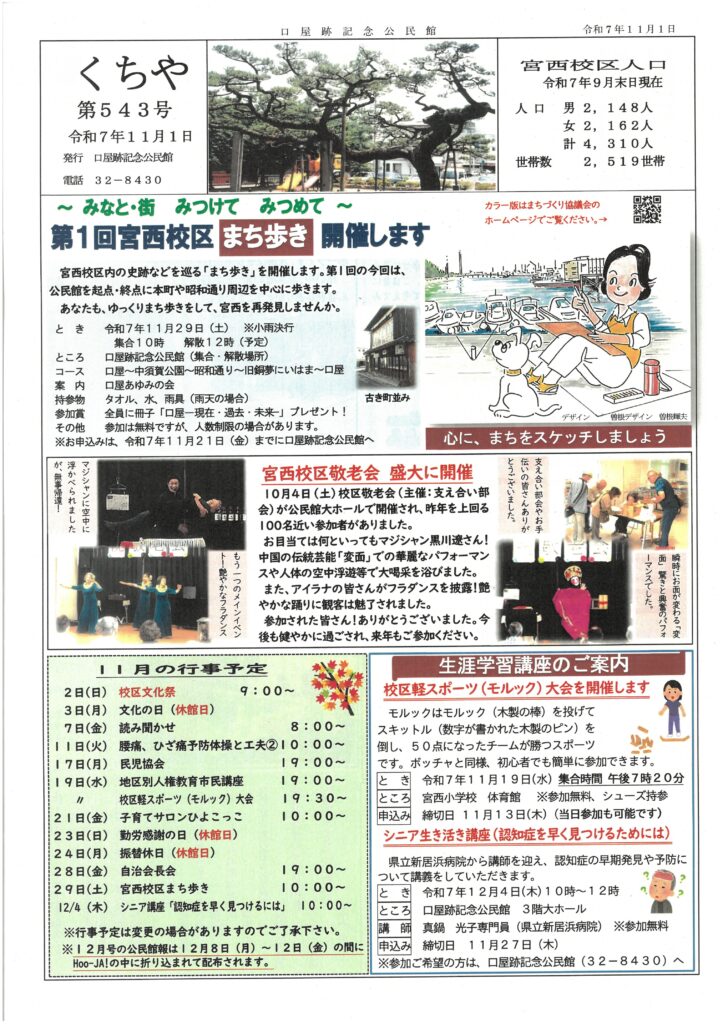 公民館報 くちや11月号を掲載します。ぜひご覧下さい。