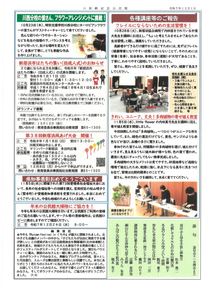 公民館報 くちや 12月号