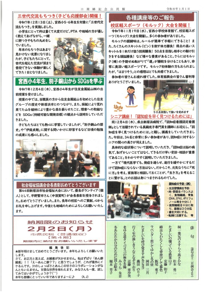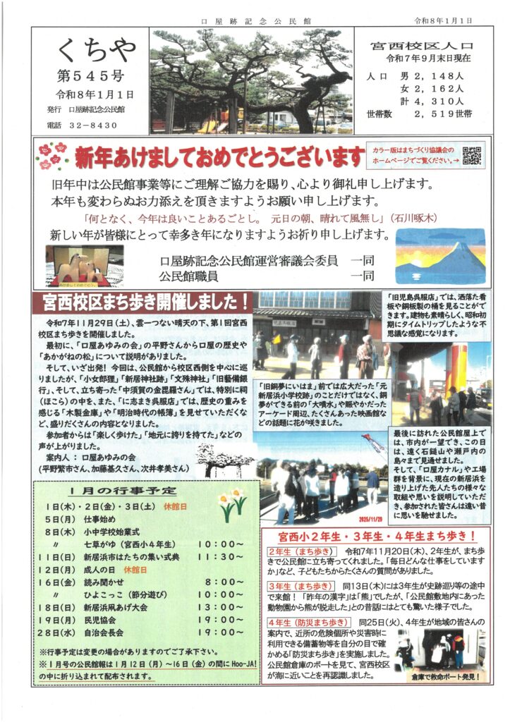 公民館報 くちや1月号を掲載します。ぜひ、ご覧ください。
