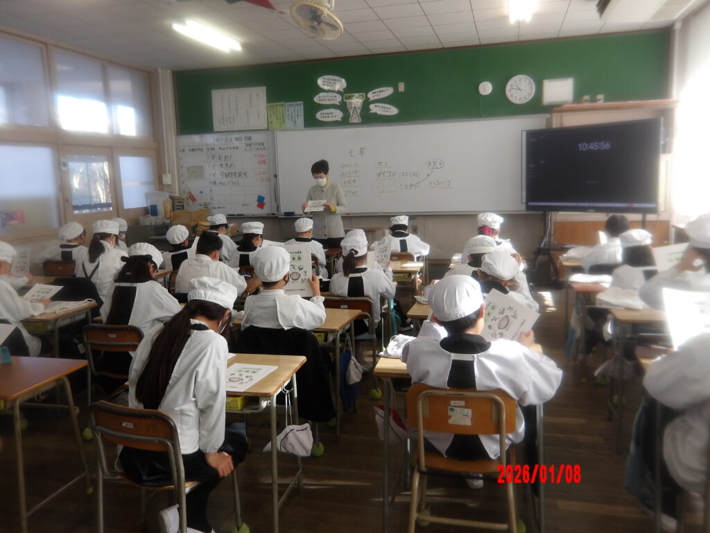 1月8日(木)宮西小学校の4年生対象に、「七草粥」について学びました。