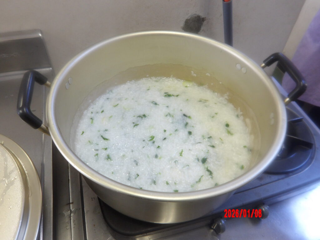 出来上がった七草粥はとても美味しく、おかわりをする子もいました。