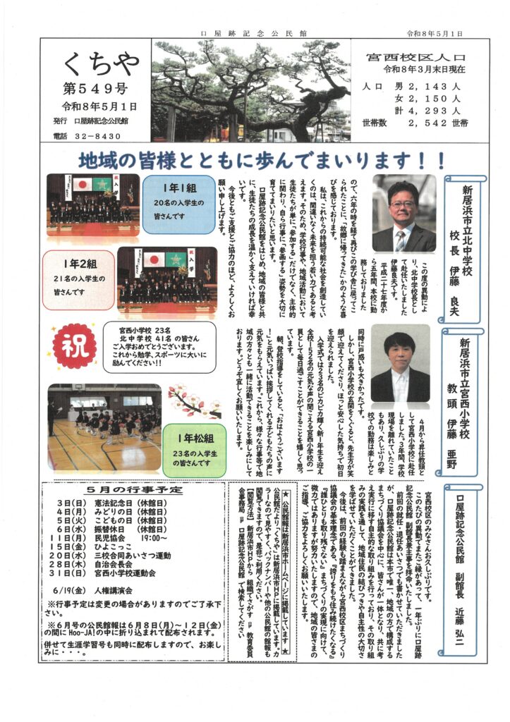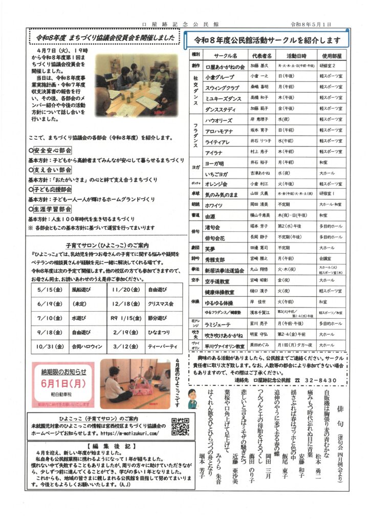 公民館報、くちや5月号を掲載します。ぜひ、ご覧ください。